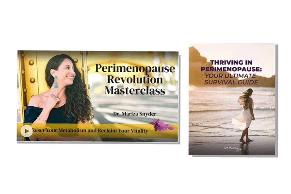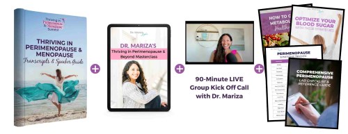 Upgrade to The Premier Pass for additional incredible bonuses worth over $800, including a 90–minute group kickoff call with Dr. Mariza, the Speaker Transcript Guide, Dr. Mariza’s Thriving in Perimenopause & Beyond Masterclass, and Dr. Mariza’s Perimenopause & Menopause Lab Guide.